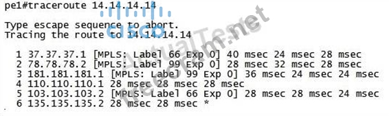 Question 57: Scenario: (Exhibit) From PE8 router, what is the label actio...