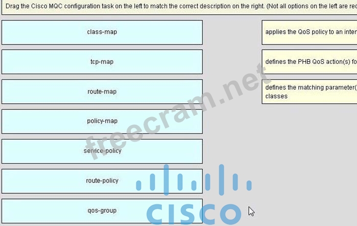 Question 38: Drag the Cisco MQC configuration task on the left to match t...