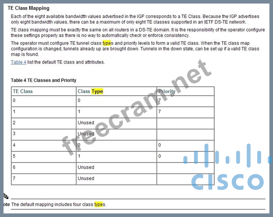 Diff-Serv TE can be deployed with either Russian Doll Model (RDM) or Maximum Allocation Model (MAM) for bandwidth calculations.