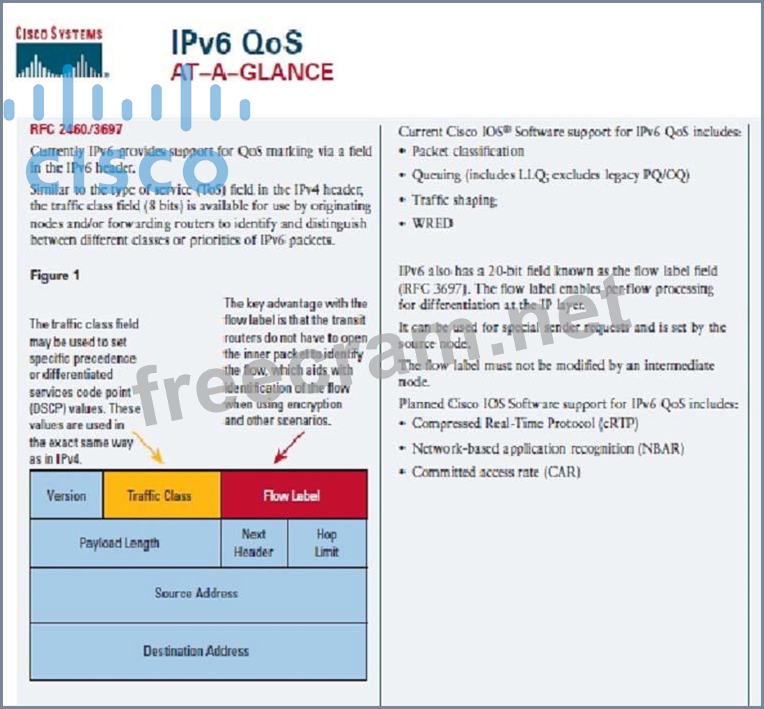 Which of the following three statements are correct regarding IPv6 QoS? (Choose three.)