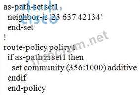 Which three commands can verify that the route-policy shown below and applied inbound on the BGP neighbor is working as expected for prefix 2.0.0.0/8? (Choose three.)