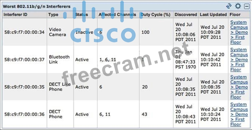 Question 78: Refer to the exhibit. According to the Cisco WCS CleanAir da...