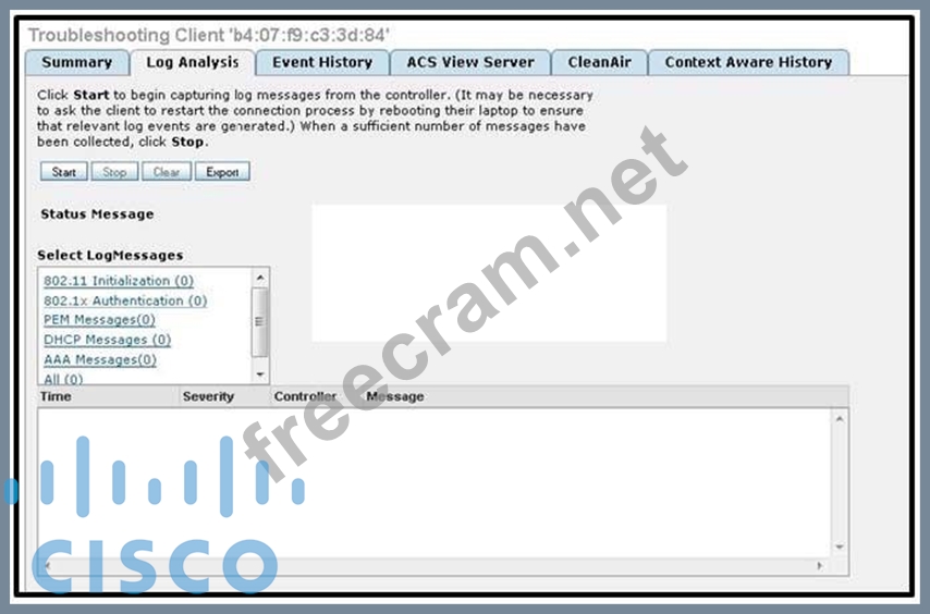 The client troubleshooting feature on Cisco WCS is very useful. You can collect the log message that is logged against a specific client on Cisco WCS. What statement about the log function in client troubleshooting is true?