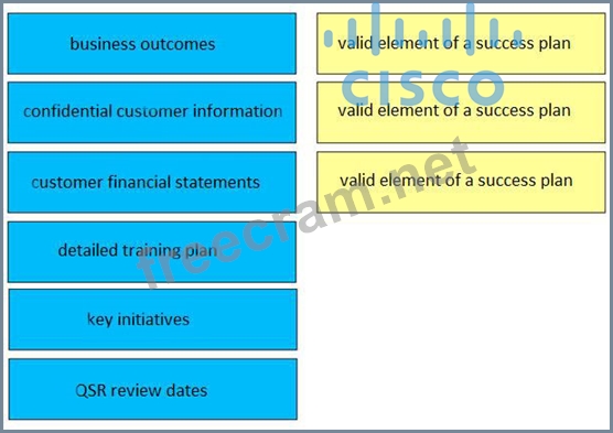 Drag and drop three valid elements of a success plan from the left to the right. Not all options are used.