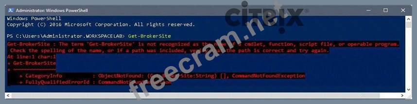 Explanation The administrator received this error because they did not run the Add-PSSnapin Citrix* command before running the Get-BrokerSite PowerShell command. This is required to load the Citrix PowerShell snap-ins.