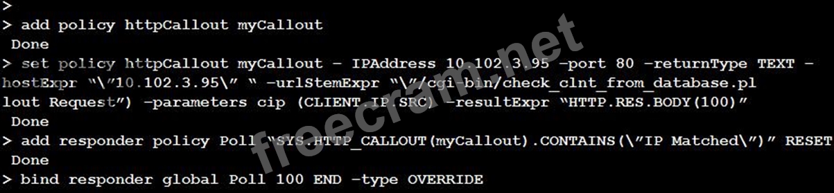 Scenario: A Citrix Administrator configured the HTTP_Callout feature on the Citrix ADC using the command-line interface. After configuring the commands, the device is facing the HTTP callout recursion issue. Click on the 'Exhibit' button to view the screenshot of the command-line interface. How will the administrator rectify the issue?