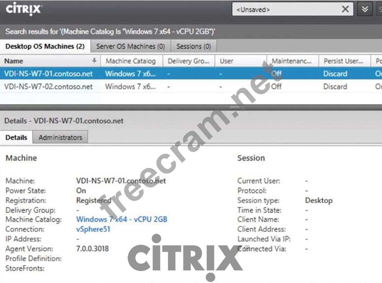 11. If you double click on the machine catalog it will bring up a search window with the individual VMs listed. You can now power them on and wait for them to show a "registered" status. If you click on an individual VM it will pull up even more details. If a user had an active session to the VM then you get a plethora more data.