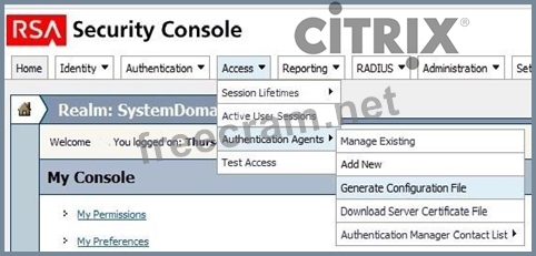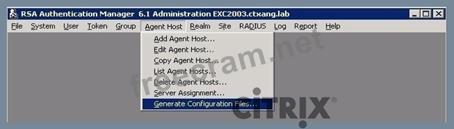 Within the RSA Authentication Manager console, choose Agent Host > Generate Configuration Files and select for One Agent Host, and choose the Agent Host created in step 1 and save the generated sdconf.rec file.