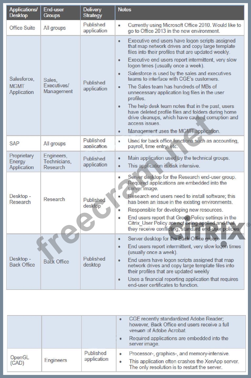 CGE currently utilizes several Citrix technologies to provide application virtualization to a global end-user base spread across several continents. Its current IT model for application virtualization is based on regional locations; each region hosts its own Citrix environment to support its local end-user base. CGE is moving toward a global IT model in which the entire application and desktop virtualization environment will be hosted in three data centers, each with a highly available NetScaler pair. CGE would like to provide dedicated desktops to some end-user groups to alleviate past issues with applications and performance. In addition, an Internet upgrade project is underway to eliminate slow connections at all sites. This will improve latency and bandwidth issues throughout the environments.