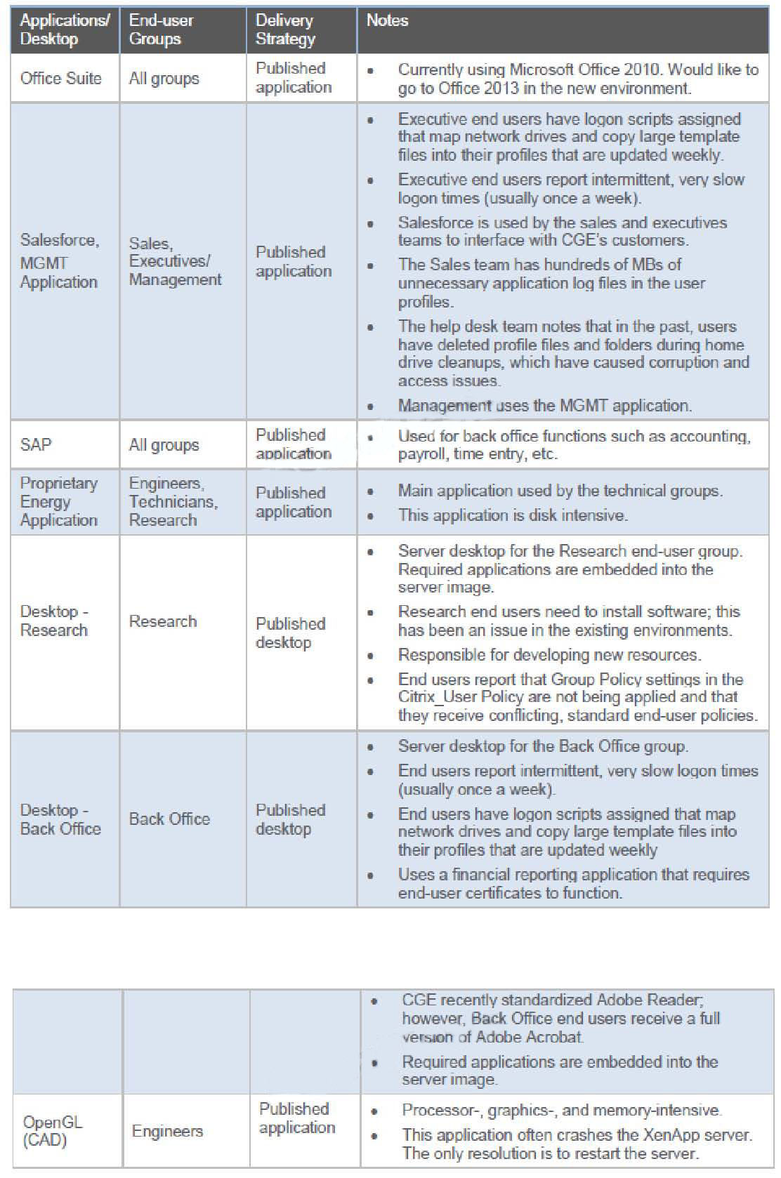 CGE currently utilizes several Citrix technologies to provide application virtualization to a global end-user base spread across several continents. Its current IT model for application virtualization is based on regional locations; each region hosts its own Citrix environment to support its local end-user base. CGE is moving toward a global IT model in which the entire application and desktop virtualization environment will be hosted in three data centers, each with a highly available NetScaler pair. CGE would like to provide dedicated desktops to some end-user groups to alleviate past issues with applications and performance. In addition, an Internet upgrade project is underway to eliminate slow connections at all sites. This will improve latency and bandwidth issues throughout the environments.