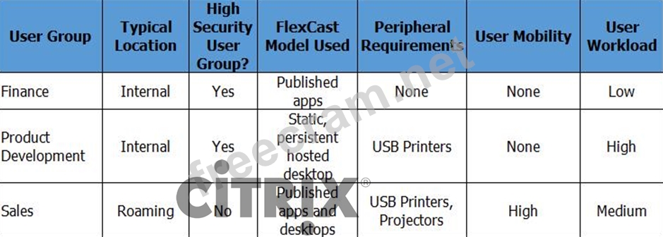 Scenario: A Citrix Architect is designing a new XenApp and XenDesktop environment and needs to determine which endpoints to include. Based on discussions with various departments, the user requirements listed in the Exhibit were collected.