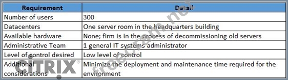 Scenario: A Citrix Architect needs to create a conceptual architecture for a XenApp and XenDesktop environment on behalf of a marketing firm. Based on some initial discussions around the firm's business goals and objectives, the architect has collected the information as shown in the Exhibit.