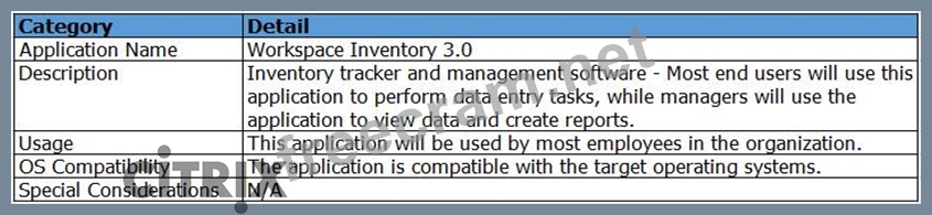 As part of an application analysis performed earlier in the project, the information shown in the Exhibit was collected regarding one of the required applications.