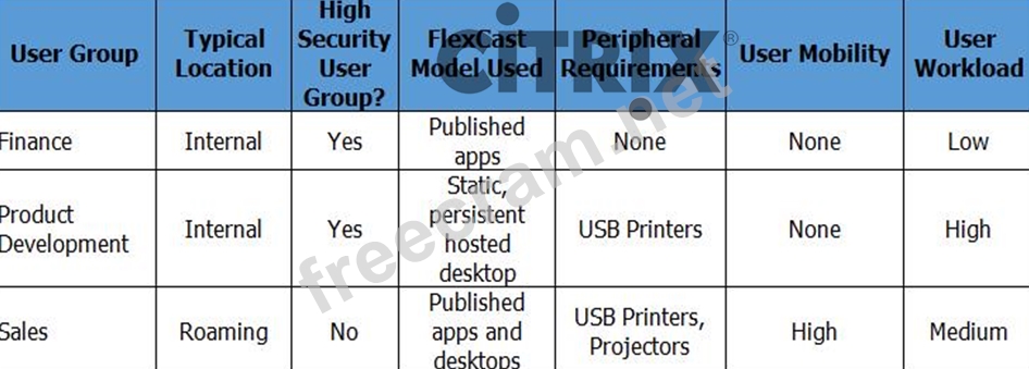Scenario: A Citrix Architect is designing a new XenApp and XenDesktop environment and needs to determine which endpoints to include. Based on discussions with various departments, the user requirements listed in the Exhibit were collected.