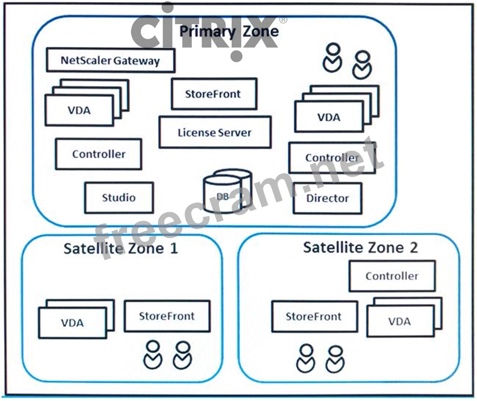 Scenario: A Citrix Architect needs to assess a XenApp and XenDesktop environment. The XenApp and XenDesktop diagram in the Exhibit gives details about the current Site and Zone design.