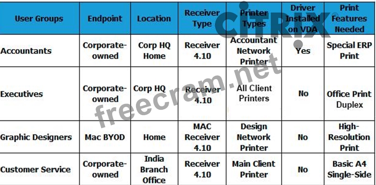 The architect has identified printing requirements for certain user groups and locations, as shown in the Exhibit.