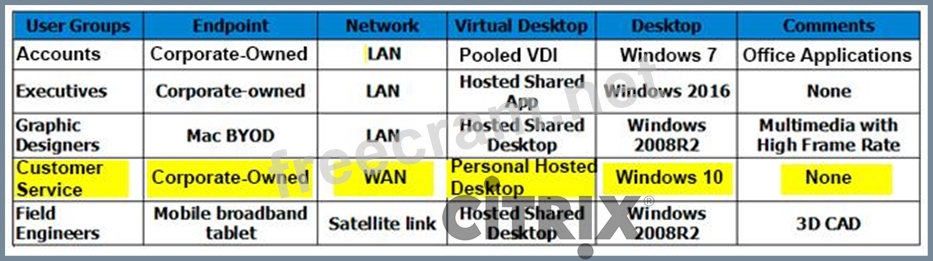 The architect has determined the user groups and FlexCast model listed in the Exhibit during the high- level design. Click the Exhibit button to view the user group and FlexCast model details.
