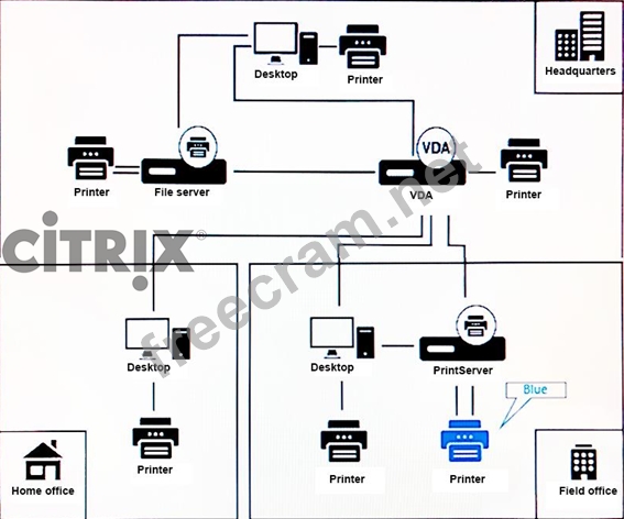 Scenario: A Citrix Architect needs to design a new XenApp and XenDesktop environment. The customer has a number of small field sales offices, each connected to the main datacenter located in the headquarters building that has a 1.5 Mbps MPLS WAN link. Each field sales office has between 5 and 10 concurrent users connecting to the Citrix environment hosted in the main datacenter. The customer would like to ensure that print jobs are compressed as much as possible to reduce any poor user experience in the field offices. Click the Exhibit button to view additional details about the environment. What should the architect recommend for mapping the blue printer in the Exhibit?