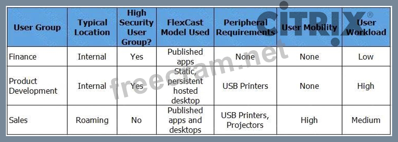 Scenario: A Citrix Architect is designing a new XenApp and XenDesktop environment and needs to determine which endpoints to include. Based on discussions with various departments, the user requirements listed in the Exhibit were collected.