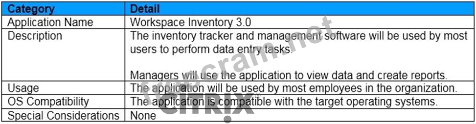 Scenario: A customer who installed all applications locally on managed laptops and desktops is willing to evaluate other application delivery methods as part of a new design created by a Citrix Architect. The environment will be standardized on Windows 10 and Windows Server 2016 for the Virtual Delivery Agent (VDA) machines.