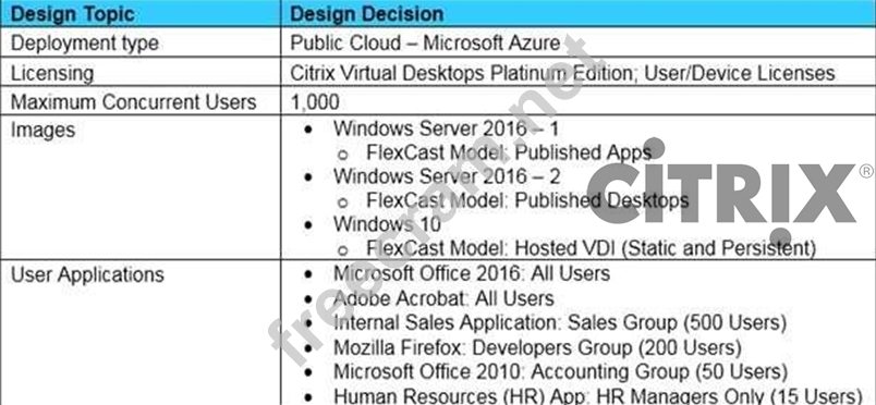 Scenario: A Citrix Architect is designing a new Citrix Virtual Apps and Desktops environment. The architect has identified the requirements, based on the assessment and early stages of the design.