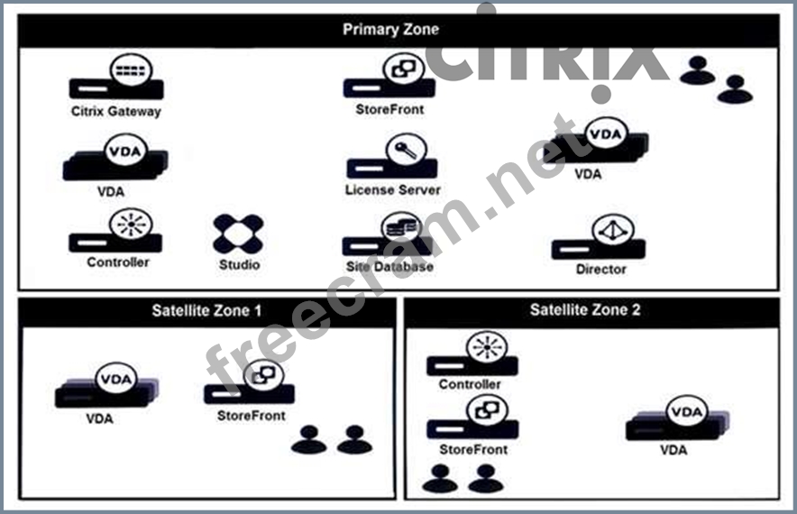Scenario: A Citrix Architect needs to assess a Citrix Virtual Apps and Desktops environment. The Citrix Virtual Apps and Desktops diagram in the exhibit gives details about the current Site and zone design.