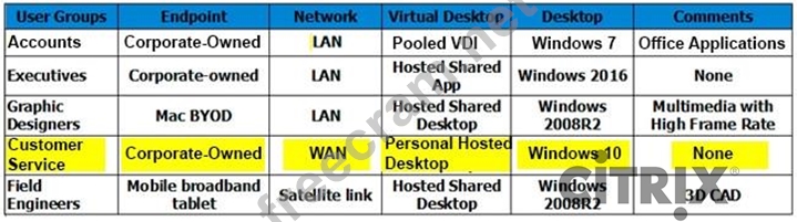 The architect has determined the user groups and FlexCast model listed in the Exhibit during the high-level design. Click the Exhibit button to view the user group and FlexCast model details.