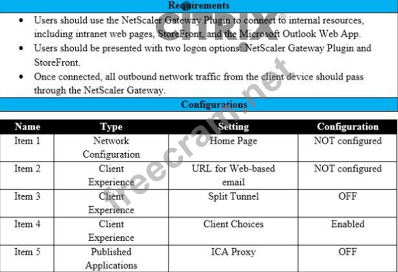 Scenario: A Citrix Architect needs to assess an existing NetScaler gateway deployment. During the assessment, the architect collected key requirements for VPN users, as well as the current session profile settings that are applied to those users.