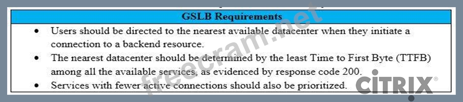 Scenario: A Citrix Architect needs to design a new multi-datacenter NetScaler deployment. The customer wants NetScaler to provide access to various backend resources by using Global Server Load Balancing (GSLB) in an Active-Active deployment.