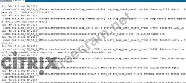 Click the Exhibit button to review the output of aaad.debug and the configuration of the authentication policy.