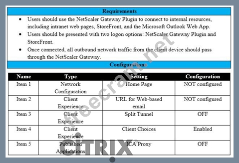 Scenario: A Citrix Architect needs to assess an existing NetScaler gateway deployment. During the assessment, the architect collected key requirements for VPN users, as well as the current session profile settings that are applied to those users.