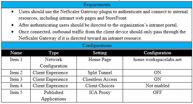 Scenario: A Citrix Architect needs to assess an existing NetScaler Gateway deployment. During the assessment, the architect collected key requirements for VPN users, as well as the current session profile settings that are applied to those users.
