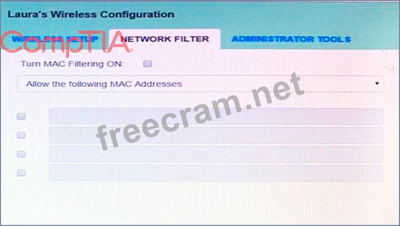 Finally, Laura wants to ensure that only her laptop and Smartphone can connect to the network.