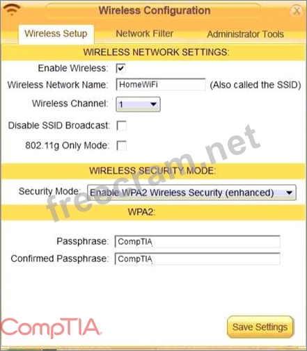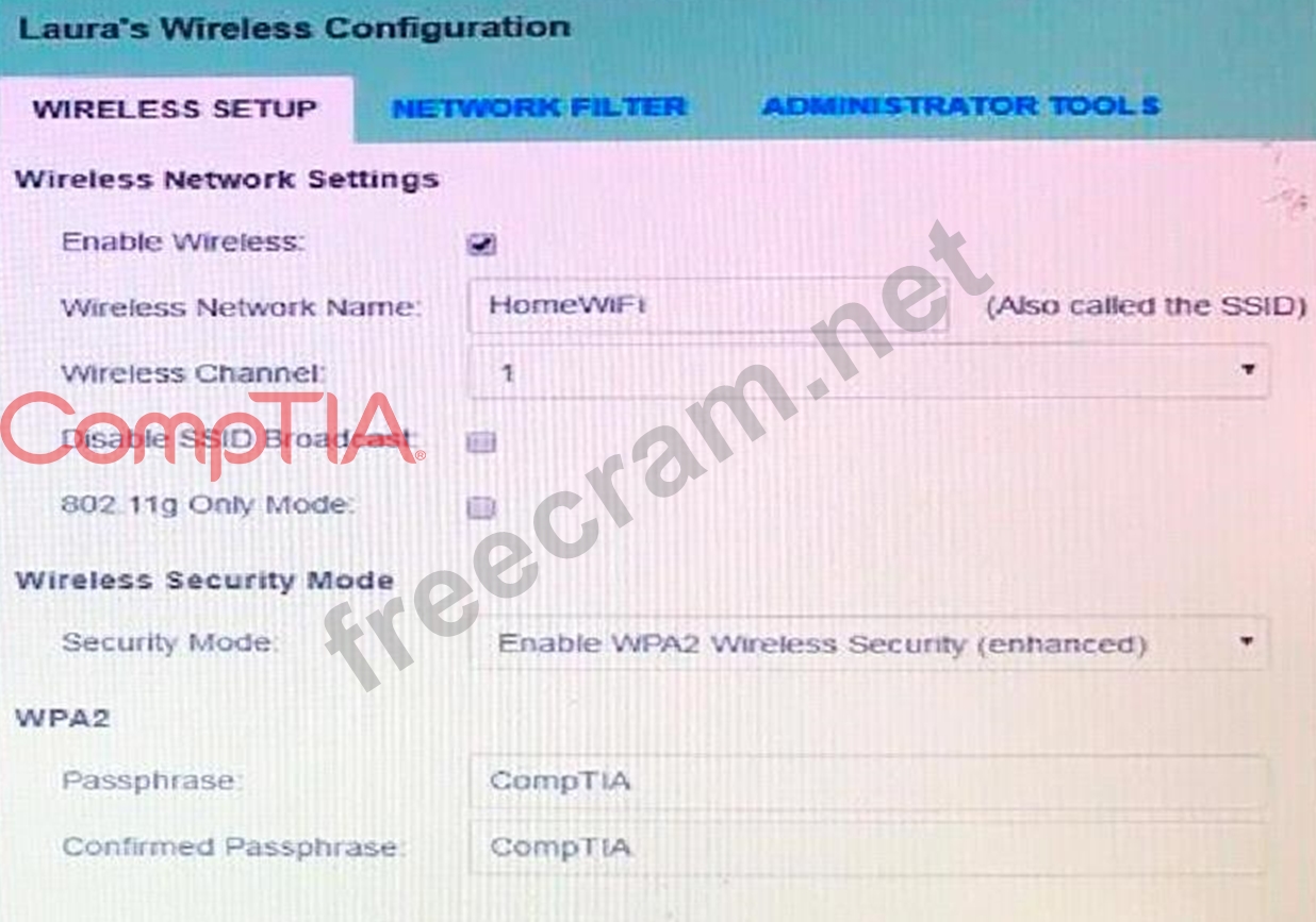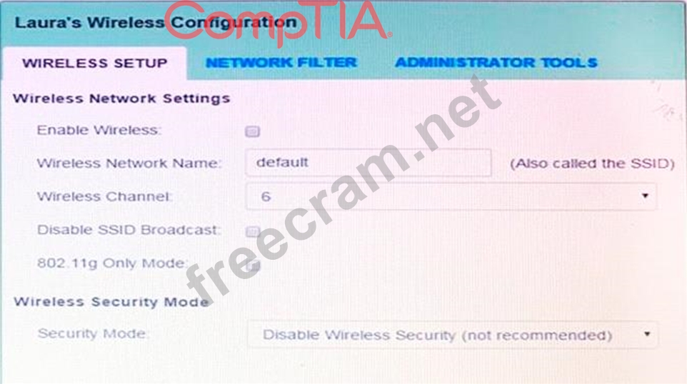 Laura, a customer, has instructed you to configure her home office wireless access point.