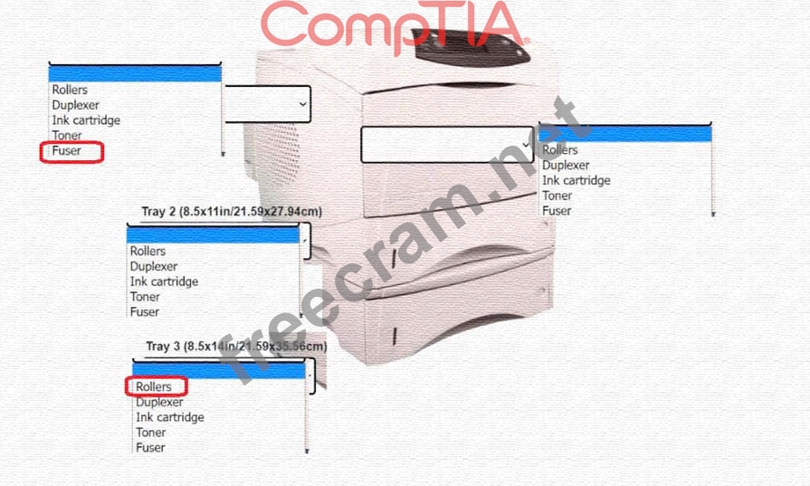 Question 83: The printer in a main office repeatedly jams. Which of the f...