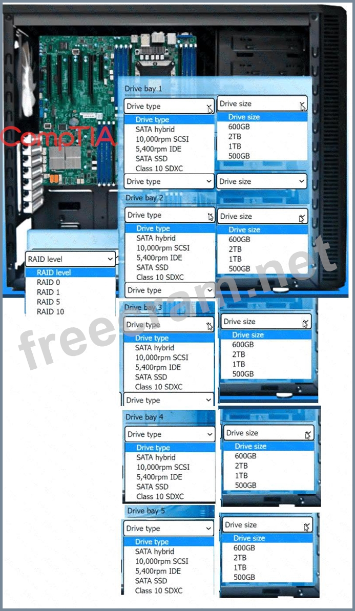 Have 2TB of usable space: RAID 10 uses half of the total disk capacity for mirroring, so the usable space is equal to the size of two disks. By using four SATA SSDs of 1TB each, the total disk capacity is 4TB, and the usable space is 2TB, which meets the requirement.