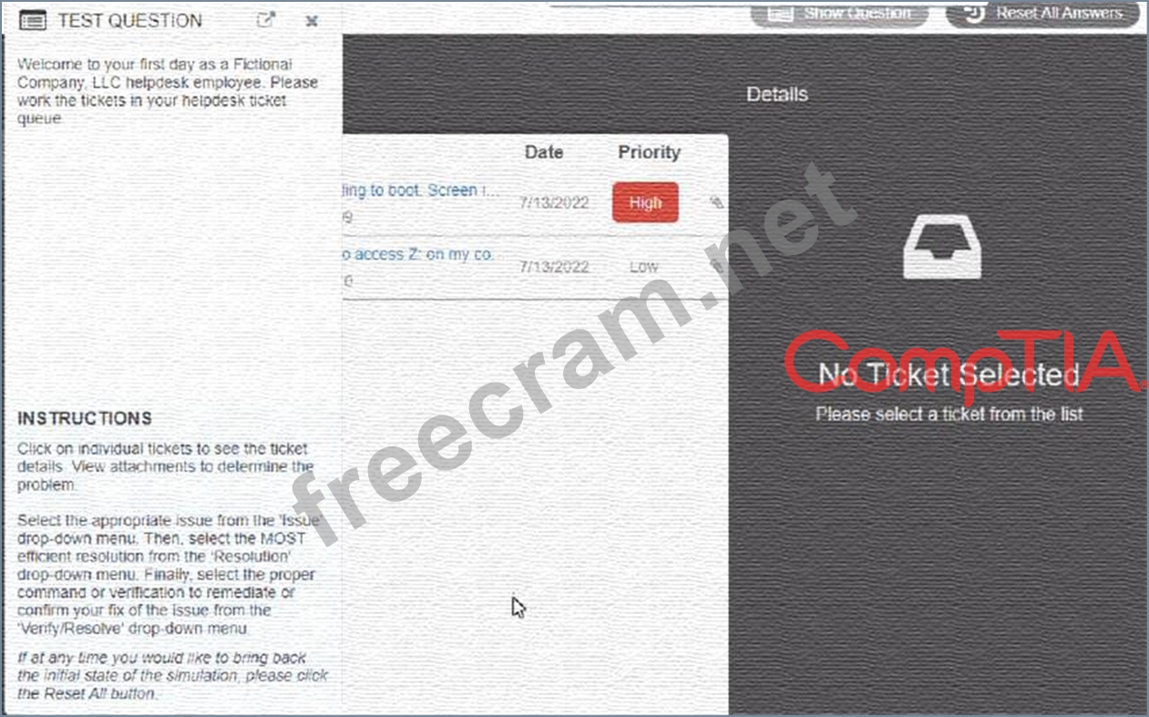 Welcome to your first day as a Fictional Company. LLC helpdesk employee. Please work the tickets in your helpdesk ticket queue.