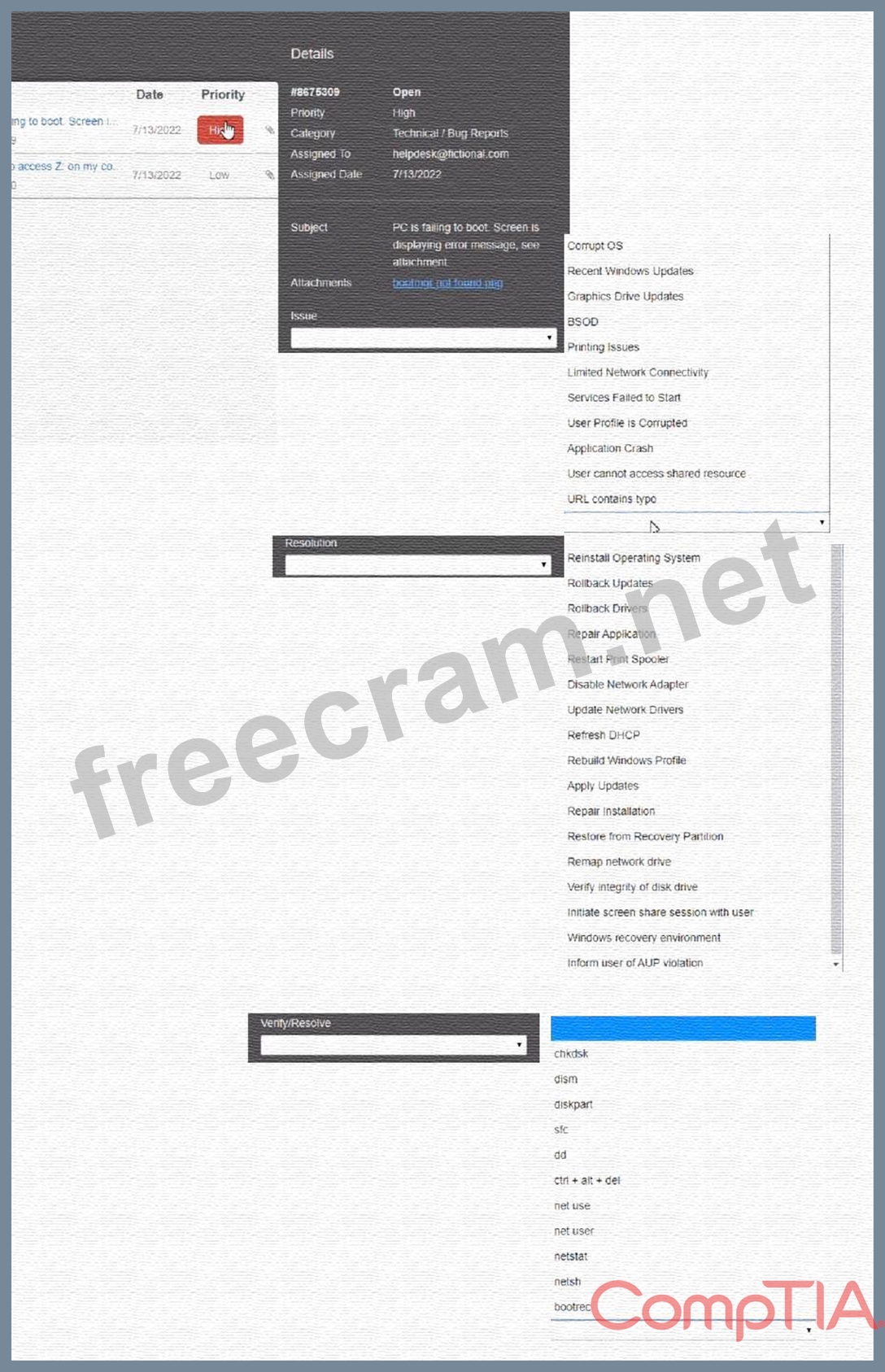 Question 198: A technician has spent hours trying to resolve a computer is...