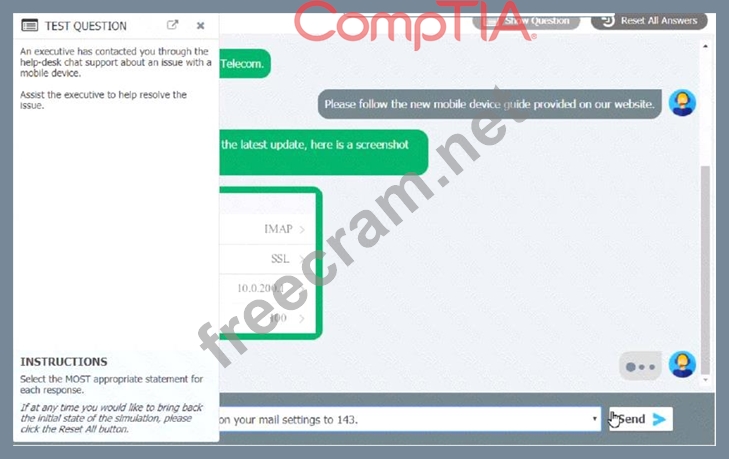 Question 43: An executive has contacted you through the help-desk chat su...