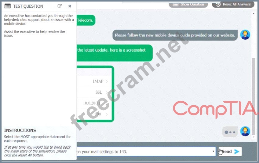 An executive has contacted you through the help-desk chat support about an issue with a mobile device.