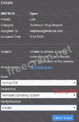 Question 83: An employee has repeatedly contacted a technician about malw...