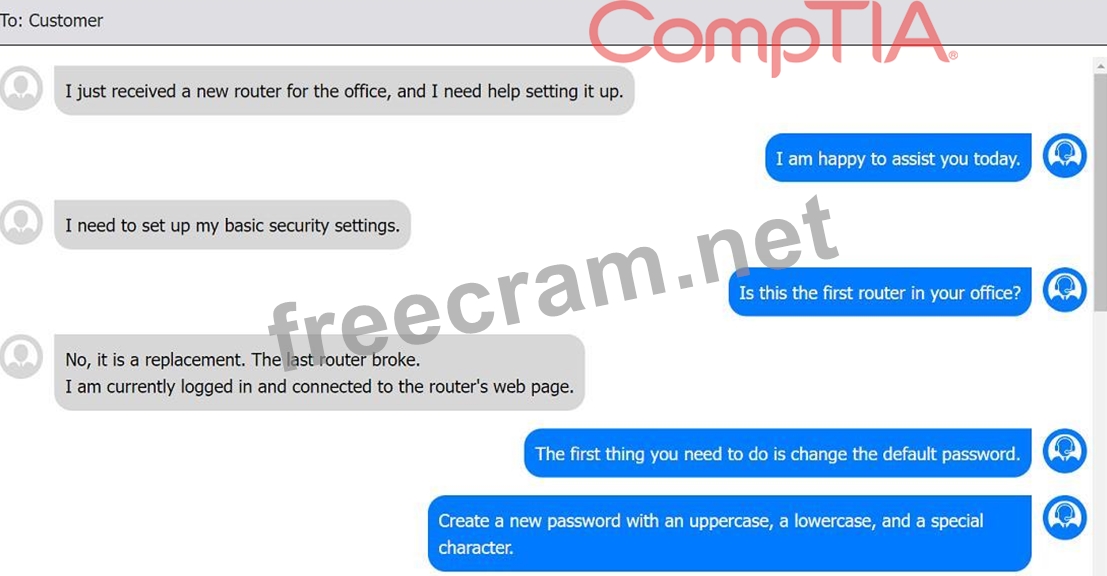 You have been contacted through the help desk chat application. A user is setting up a replacement SOHO router. Assist the user with setting up the router. INSTRUCTIONS Select the most appropriate statement for each response. Click the send button after each response to continue the chat. If at any time you would like to bring back the initial state of the simulation, please click the Reset All button.