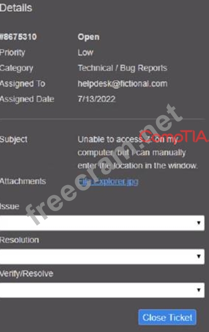 Question 58: A technician receives a ticket indicating the user cannot re...