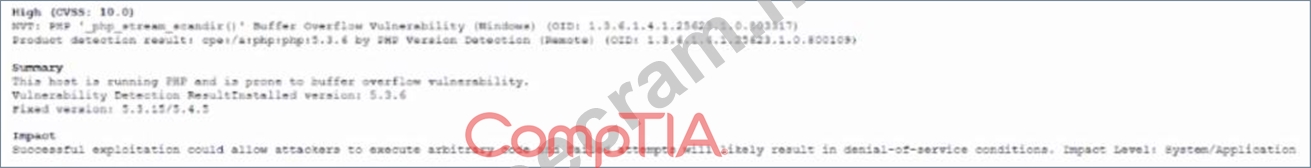 Question 105: A vulnerability scanner detected an obsolete version of an o...