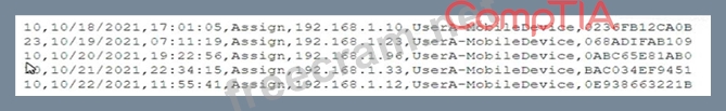 A mobile administrator is reviewing the following mobile device DHCP logs to ensure the proper mobile settings are applied to managed devices: Which of the following mobile configuration settings is the mobile administrator verifying?