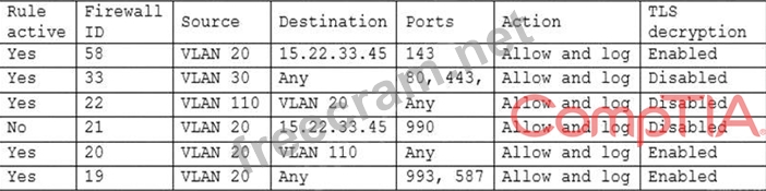 A security engineer has been asked to close all non-secure connections from the corporate network. The engineer is attempting to understand why the corporate UTM will not allow users to download email via IMAPS. The engineer formulates a theory and begins testing by creating the firewall ID 58, and users are able to download emails correctly by using IMAP instead. The network comprises three VLANs: The security engineer looks at the UTM firewall rules and finds the following: Which of the following should the security engineer do to ensure IMAPS functions properly on the corporate user network?