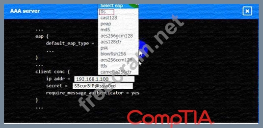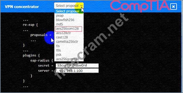 An IPSec solution is being deployed. The configuration files for both the VPN concentrator and the AAA server are shown in the diagram.