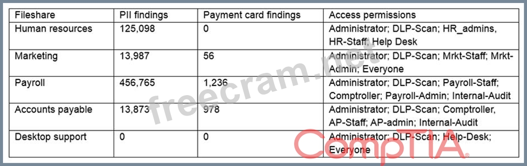 A company is deploying a DIP solution and scanning workstations and network drives for documents that contain potential Pll and payment card data. The results of the first scan are as follows: