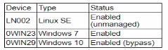 OWIN23 is running Windows 7, which is a legacy operating system. Many EDR solutions no longer provide full support for outdated operating systems like Windows 7, which has reached its end of life and is no longer receiving security updates from Microsoft. This makes such systems more vulnerable to infections and attacks, including remote access Trojans (RATs). * A. OWIN23 uses a legacy version of Windows that is not supported by the EDR: This is the most probable cause because the lack of support means that the EDR solution may not fully protect or monitor this system, making it an easy target for infections. * B. LN002 was not supported by the EDR solution and propagates the RAT: While LN002 is unmanaged, it is less likely to propagate the RAT to OWIN23 directly without an established vector. * C. The EDR has an unknown vulnerability that was exploited by the attacker: This is possible but less likely than the lack of support for an outdated OS. * D. OWIN29 spreads the malware through other hosts in the network: While this could happen, the status indicates OWIN29 is in a bypass mode, which might limit its interactions but does not directly explain the infection on OWIN23. References: * CompTIA Security+ Study Guide * NIST SP 800-53, "Security and Privacy Controls for Information Systems and Organizations" * Microsoft's Windows 7 End of Support documentation