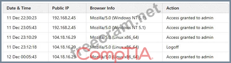 The logs indicate unauthorized access from 104.18.16.29, an external IP, to the building camera's administrative console during off-hours. Restricting access only to approved IPs ensures that only authorized personnel can remotely control the cameras, reducing the risk of unauthorized access and manipulation. * Implementing WAF protection (A) secures against web application attacks but does not restrict unauthorized administrative access. * Upgrading the firmware (B) is good security hygiene but does not immediately mitigate the active threat. * Blocking IP 104.18.16.29 (D) is a temporary measure, as an attacker can switch to another IP. A better long-term solution is whitelisting trusted IPs.